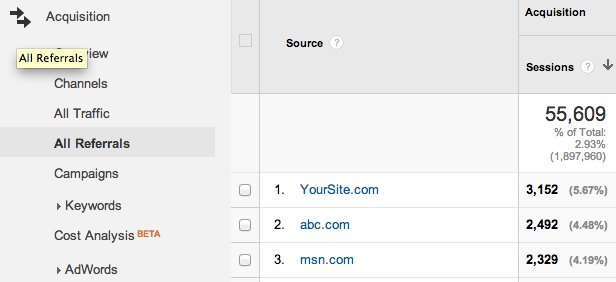 Acquisition > All Traffic > Referrals