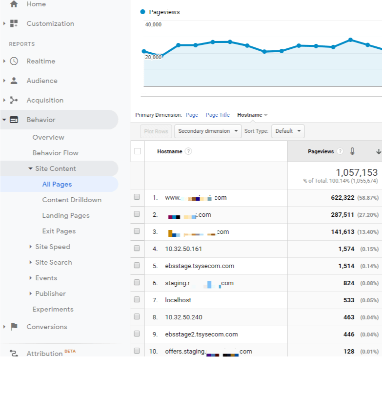 Behavior > Site Content > All Pages > Switch Primary Dimension from “Page” to “Hostname”