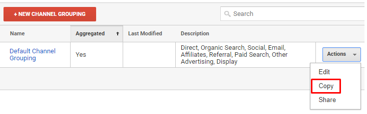 - Copy the default channel grouping to use as a baseline