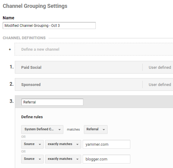 - Create new channel grouping within Google Analytics based on the source and medium you have defined in your UTM generator.