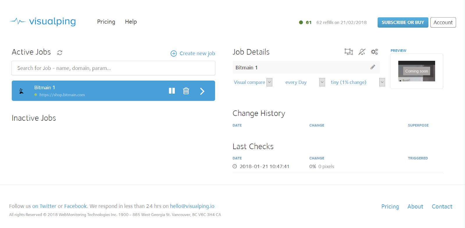 Visualping's pricing is structured based on the number of checks per month, monitoring frequency, and user count.