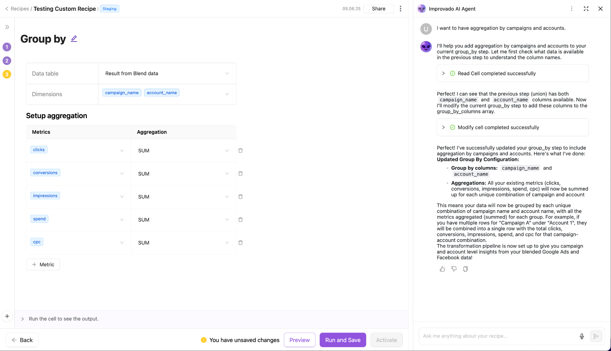 Similar to Zapier, Improvado includes AI-driven features, including a natural-language AI Agent for querying unified marketing data.