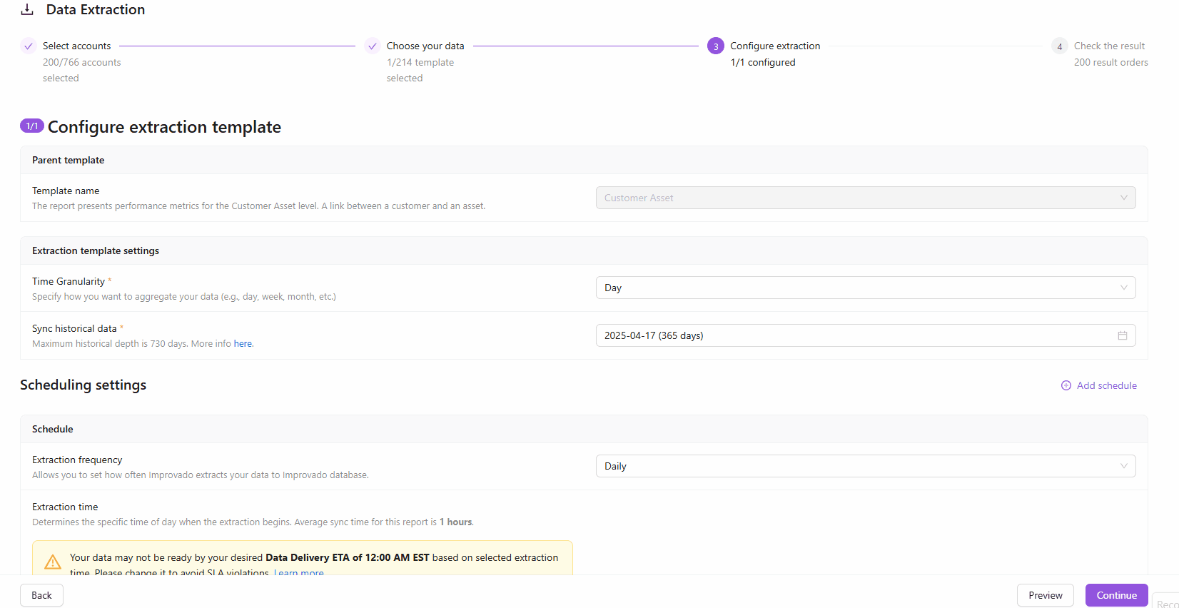 You can now preview a sample of your data directly in the extraction setup — before committing to a full sync. See exactly which fields and values will be extracted, catch configuration issues early, and set up extractions with confidence.
