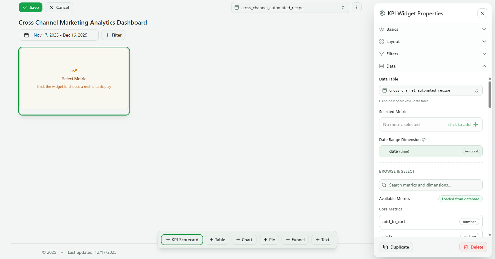 The experience is intentionally lightweight and feels intuitive, similar to traditional BI tools like Looker Studio or Tableau.