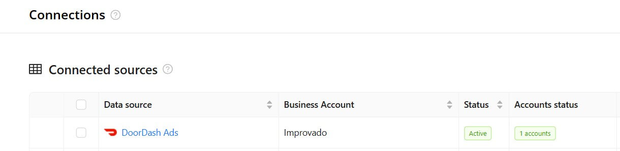 Step 3. After completing the connection process, the DoorDash Ads connection will appear in your Connected sources list.