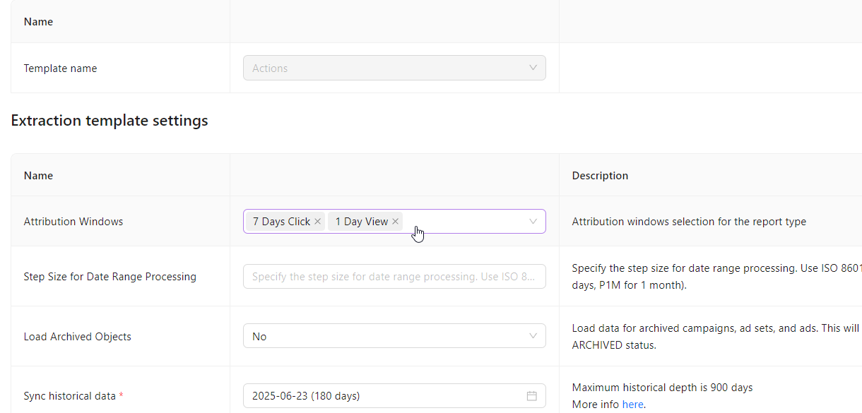 Step 6. (Optional) Configure attribution windows: 1d_click, 7d_click, 28d_click, 1d_view, 7d_view.