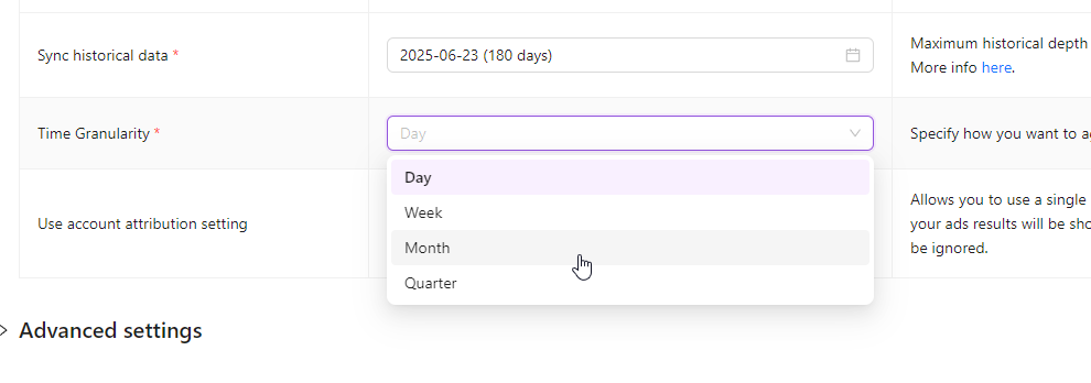 Step 3. Select time granularity: Day, Week, Month, or Quarter.
