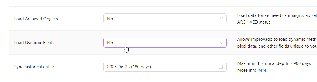 Step 5. (Optional) Enable Load Dynamic Metrics to get Custom Conversions and Custom Pixel Events as separate columns in your dataset.