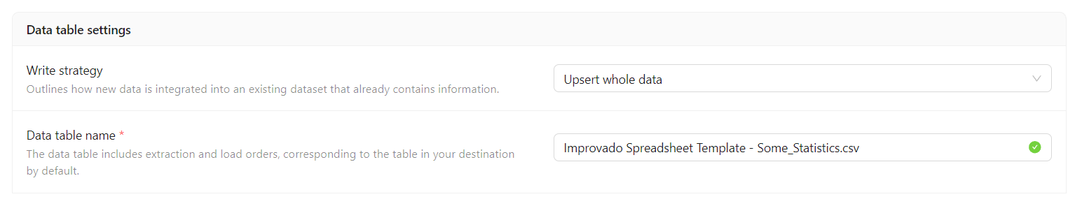 Choose Write strategy that will be used when extracting data from your files and uploading it into Improvado Storage. Learn more.