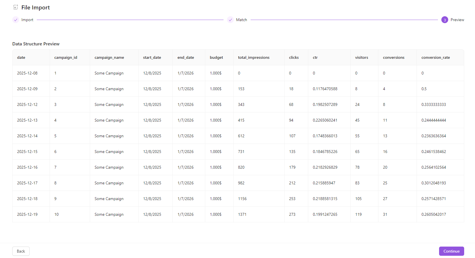 Once you've reviewed the fields, click the Continue button to confirm settings and proceed with data extraction.