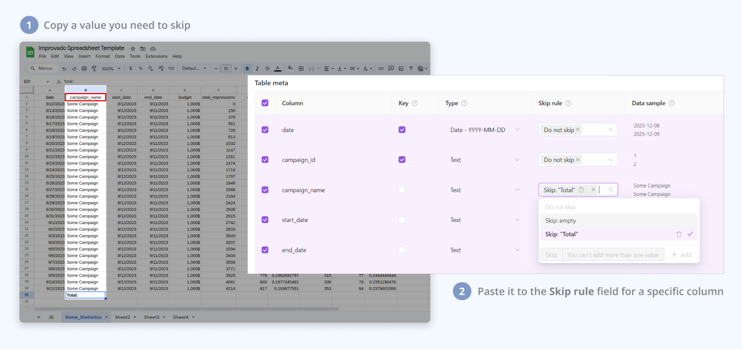 The skip rule allows you to exclude empty rows and rows with specific values in selected fields