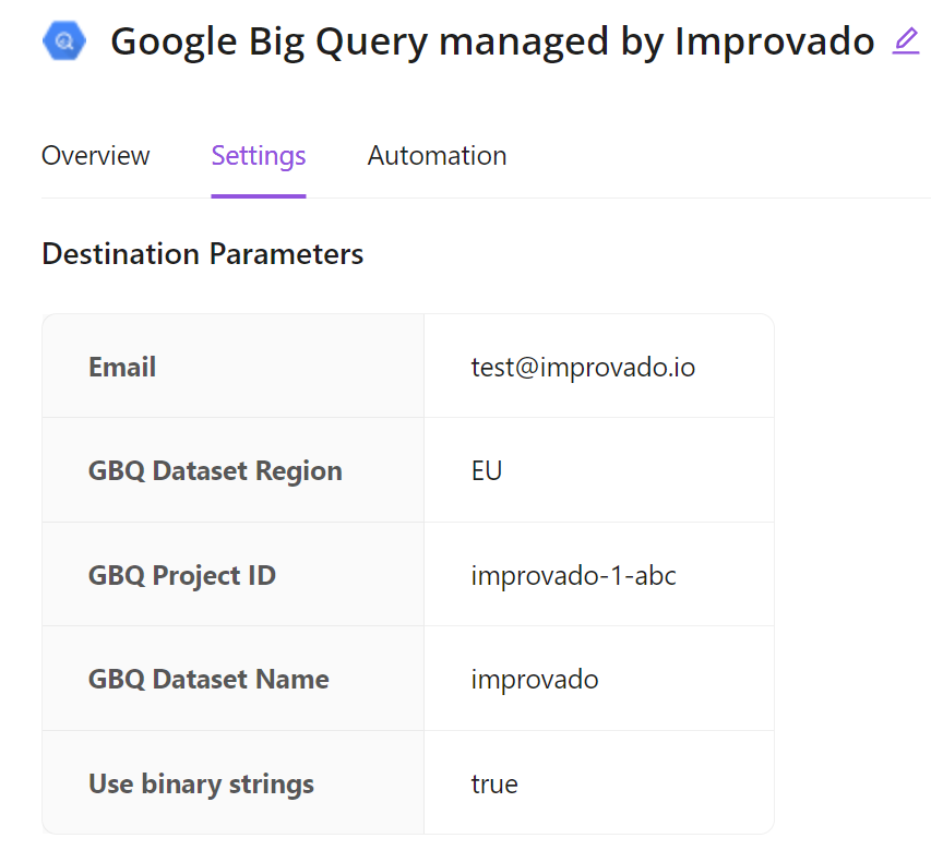 This destination is similar to Google BigQuery, but, in this case, the GBQ instance is created and managed by Improvado.