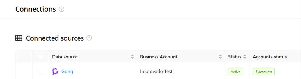 Step 3. After completing the connection process, the Gong connection will appear in your Connected sources list.