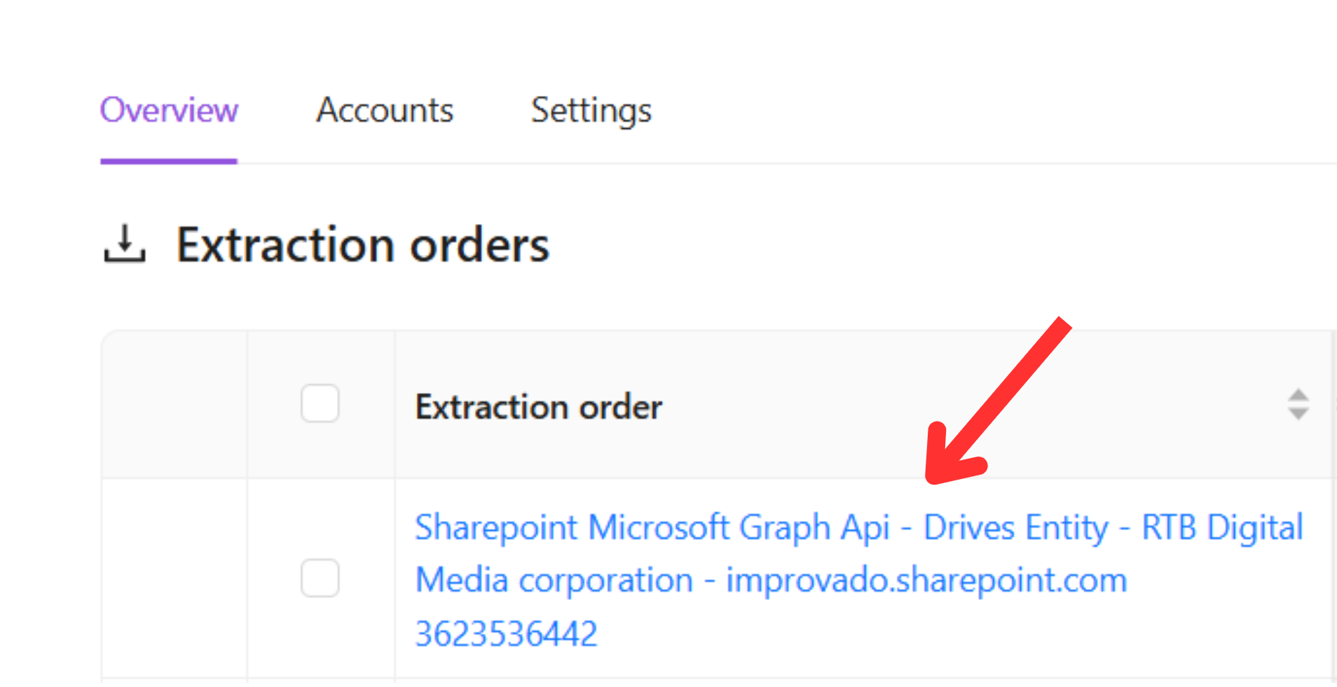 To see the extraction orders configuration, you need to click on the order name in the extraction orders list.