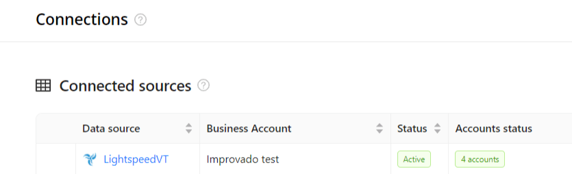 Step 4. After completing the connection process, the LightspeedVT connection will appear in your Connected sources list.