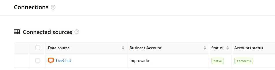 Step 4. After completing the connection process, the LiveChat connection will appear in your Connected sources list.