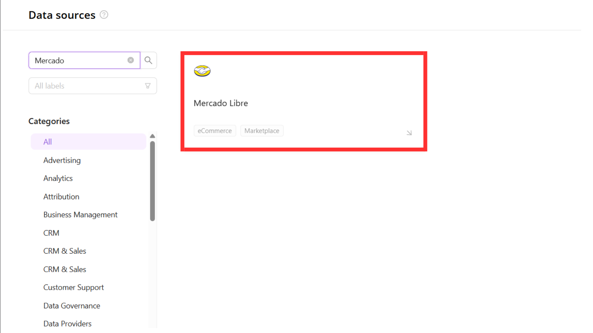 Step 4. After completing the connection process, the Mercado Libre connection will appear in your Connected sources list.