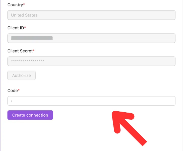 Step 3.7. In the final step of the OAuth process, copy the Code and paste it into the corresponding field in the Improvado authorization form.