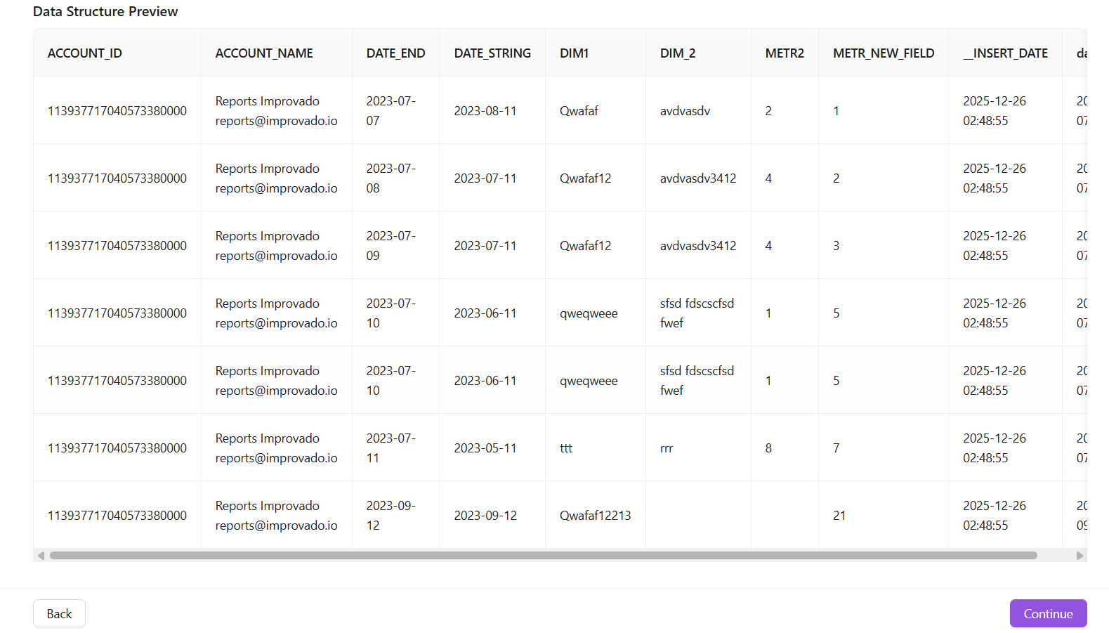 Check the Data Structure Preview. In this step, you see the first row of data that will be extracted after you click the Continue button.