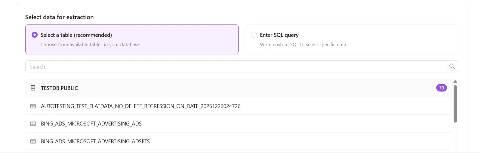 Set the Data table name which will be used for loading data to your destination.