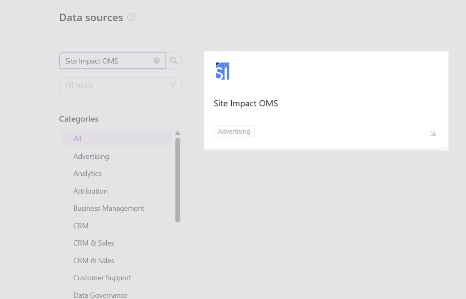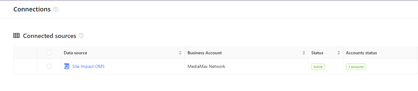 Step 4. After completing the connection process, the Site Impact OMS connection will appear in your Connected sources list.