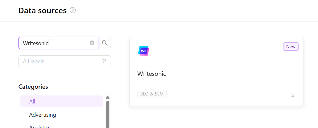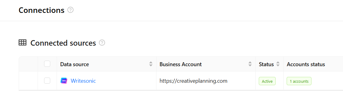 Step 4. After completing the connection process, the Writesonic connection will appear in your Connected sources list.