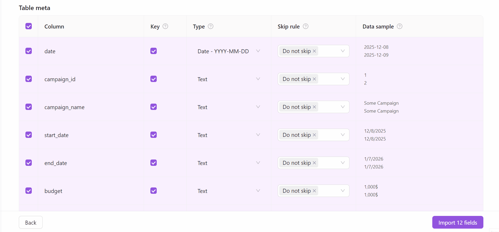 Note: This feature is currently available only for Snowflake and Google BigQuery flat data ingestions.