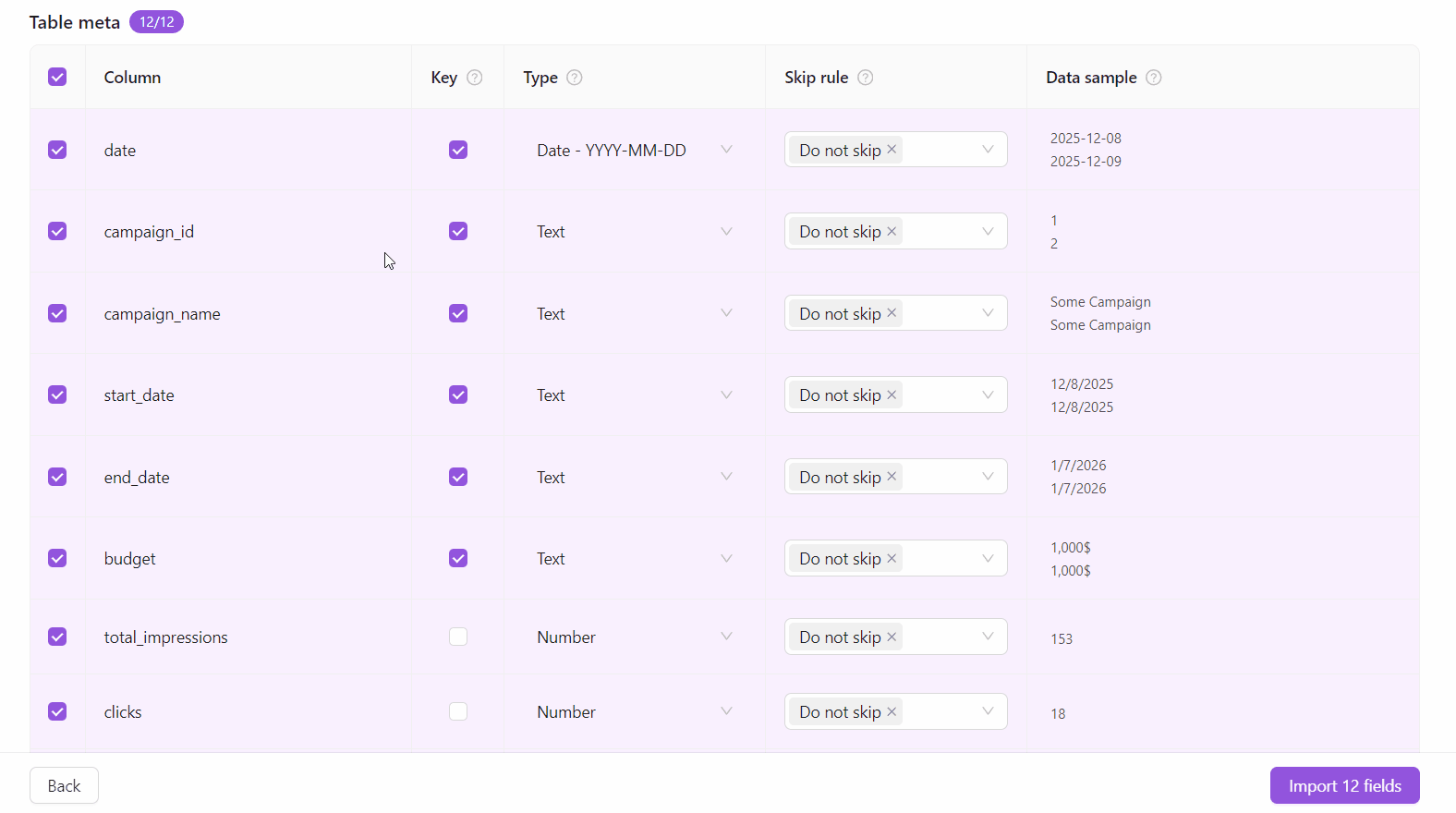 Note: This feature is currently available only for Snowflake and Google BigQuery flat data ingestions.